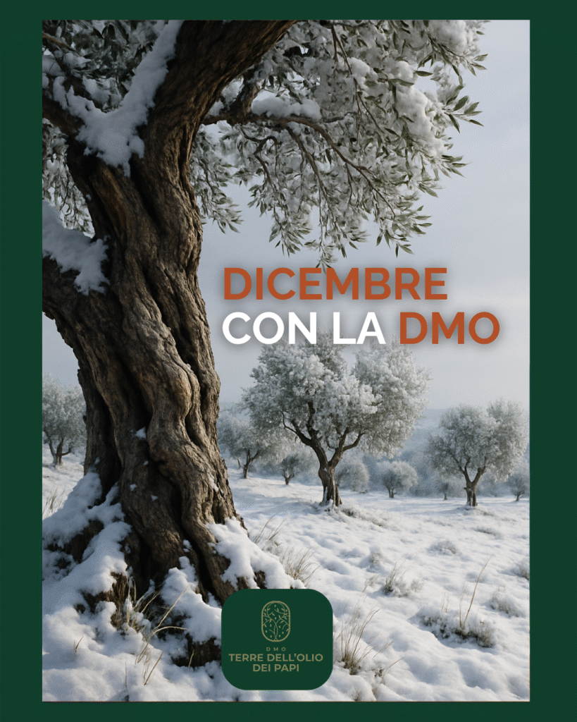 La DMO Terre dell’Olio dei Papi sta per inaugurare il nuovo calendario di dicembre, un programma che toccherà tutti i Comuni aderenti con attività culturali, iniziative dedicate alla cultura dell’olio e momenti di promozione del patrimonio locale.